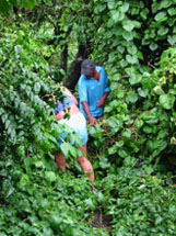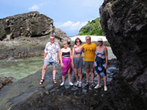 Tourists visit the outflow of Settlement LakeBring sturdy shoes!